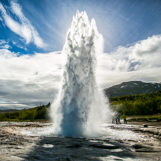 - Der berühmteste Geysir im Gebiet, Geysir, ist heute weitgehend inaktiv. Sehr aktiv ist dafür aber sein Namensvetter, der Strokkur, in etwa alle 5-10 Minuten eine 20-30 Meter hohe Fontäne aus Wasser und Dampf ausstößt.